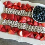 Imagine the bright ruby red of freshly sliced strawberries, the deep indigo of plump blueberries, and the gleaming white of chocolate-covered pretzels, all artfully arranged to mimic the Stars and Stripes. The sweet, juicy berries burst with every bite, offering a refreshing contrast to the slight salty crunch of the pretzels. It’s a symphony of textures and natural flavors that light up any picnic table. This easy fruit flag dessert is not only visually striking but also delightfully light, a perfect complement to all those delicious BBQ dishes.
