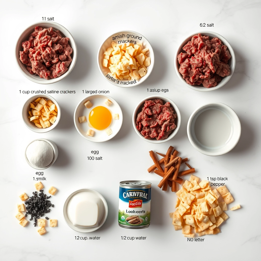 - In a large bowl, mix ground beef, crushed saltine crackers, chopped onion, egg, milk, salt, and pepper until well combined.