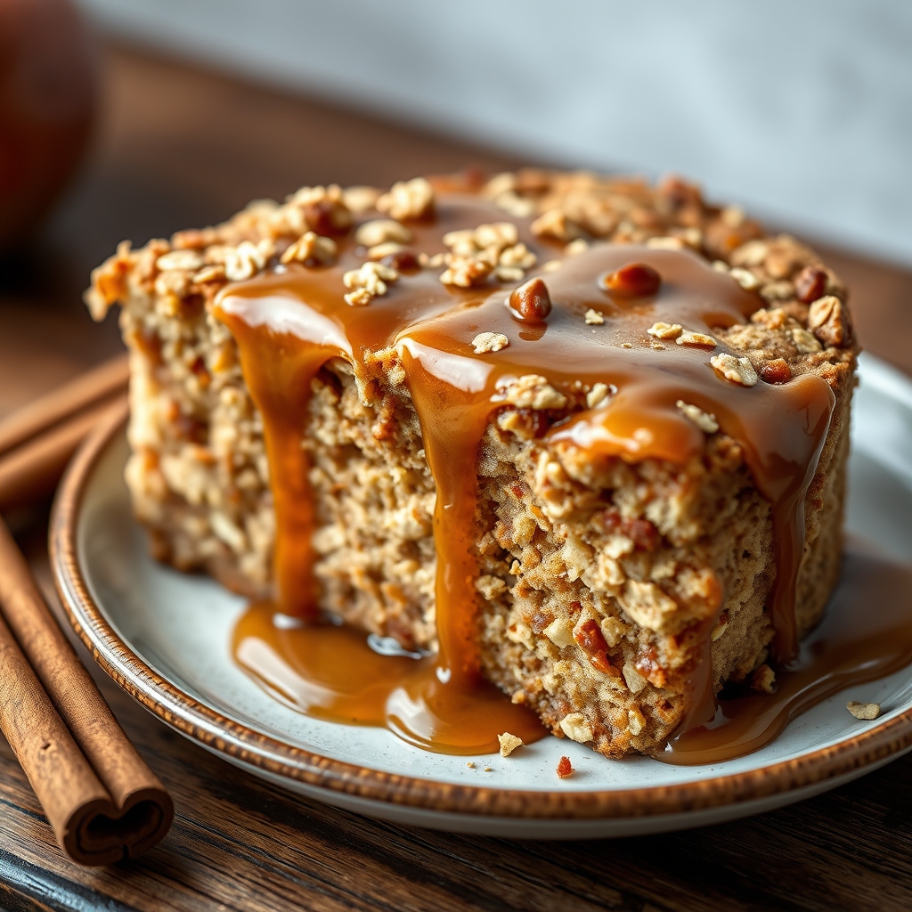 A warm and comforting bowl of oatmeal infused with sweet apples and aromatic cinnamon, perfect for a cozy breakfast.