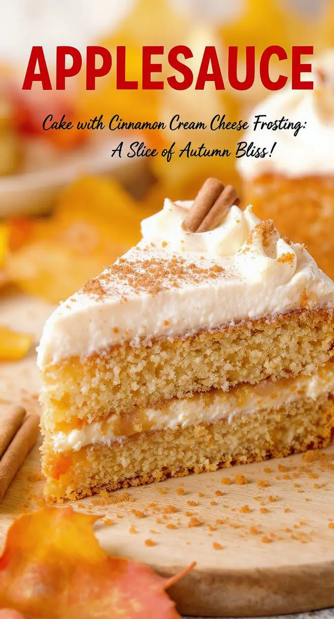 A moist and flavorful cake made with applesauce, perfect for autumn, topped with cinnamon cream cheese frosting.