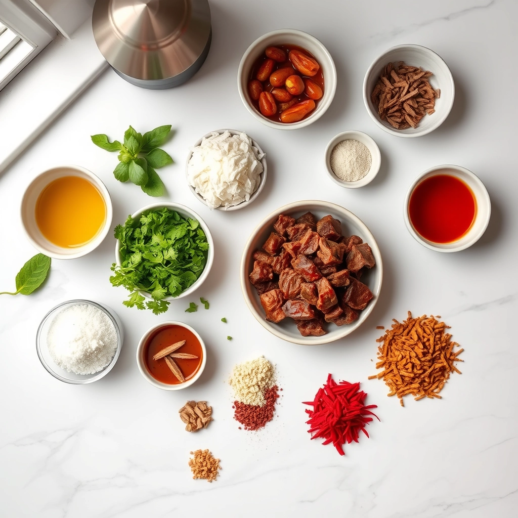Start by marinating the beef for your Spicy Beef Rendang Recipe to lock in flavor. Mix the cubed beef with ground turmeric, coriander, and a pinch of salt in a large bowl. Let it sit for at least 30 minutes, or overnight if you have time. Meanwhile, blend the shallots, garlic, ginger, and chilies into a smooth paste for the base. Heat oil in a heavy pot over medium heat, then sauté the paste until fragrant, stirring constantly to avoid burning. Add the marinated beef and sear until browned, which builds depth in your Spicy Beef Rendang Recipe.