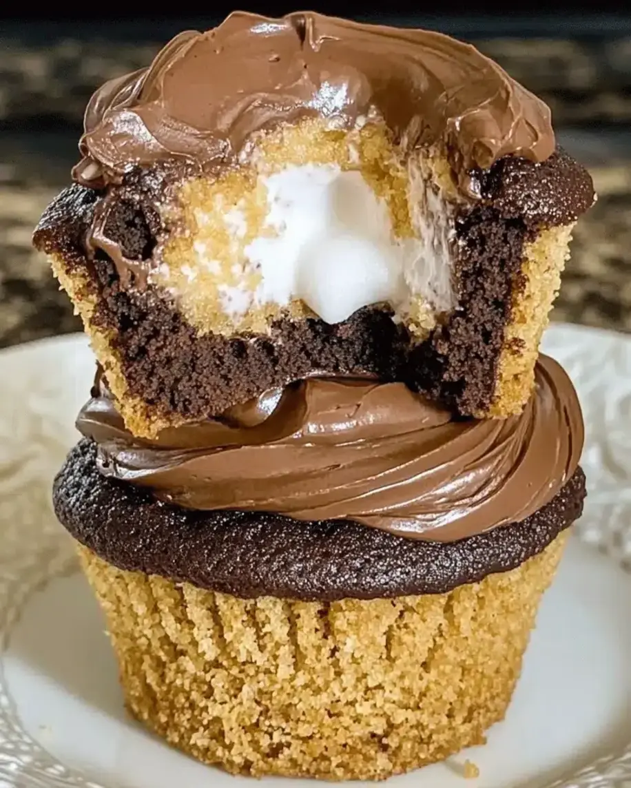 These decadent cupcakes feature a molten marshmallow center, rich chocolate frosting, and a graham cracker crumble—pure s’mores magic in every bite!
