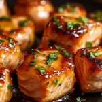 - 5️⃣Coat the salmon:Return thesalmon bitesto the skillet and toss them in the glaze until fully coated.6️⃣Garnish and serve:Sprinkle withfresh parsleyand serve hot. Enjoy!