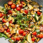 I still remember the first time I made this Grilled Zucchini Salad. It was a sweltering July afternoon in New York City, and the farmers market at Union Square was overflowing with zucchini that looked like they had been kissed by the sun. I grabbed a few, along with some sweet corn and cherry tomatoes, and headed home to my tiny apartment kitchen. The heat was so intense that turning on the oven felt like a crime, so I lit up my small charcoal grill on the fire escape (yes, it’s a New York thing!) and let the fire do the work. That night, as I tossed the charred vegetables with a bright lemon dressing and a handful of peppery arugula, I knew I had stumbled onto something magical — an easy grilled zucchini salad that was both simple and spectacular. Little did I know, this healthy summer salad would go on to become one of the most requested recipes from my readers.