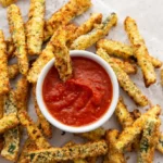 Serving & PresentationThese crisps are best served immediately, right after they’ve cooled for a couple of minutes. I love arranging them on a large wooden board — a rémoulade-style platter I picked up in Paris — with a small bowl of marinara sauce or a creamy lemon-herb dip in the center. They’re fantastic as a healthy zucchini snack for movie night, a crispy side to grilled chicken or fish, or an appetizer that disappears before the main course. In Morocco, we’d serve something similar with a sprinkle of cumin and fresh mint. Here in NYC, I sometimes add a pinch of chili flake or za’atar before serving. The bright, green zucchini against the deep amber cheese is visually stunning — perfect for a dinner party or a quiet night in.