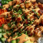 Easy, beginner-friendly Bang Bang Chicken Bowl 🌶️🍗 Crispy chicken bites, creamy sweet-spicy sauce, fresh veggies, and rice—flavor-packed and perfect for lunch, dinner, or meal prep! #bangbangchicken #chickenbowls #easyrecipes #flavorbomb #mealprepideas #weeknightdinners #spicychicken #comfortfood