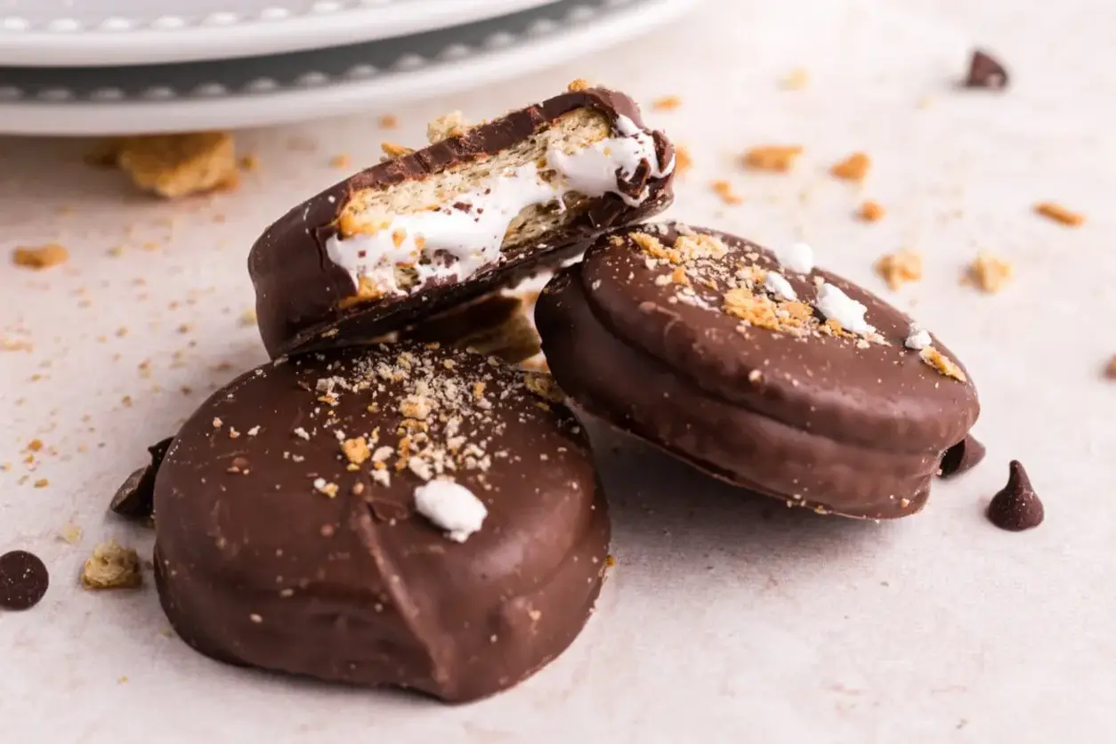 While these are best eaten at room temperature or slightly chilled, if you want a taste reminiscent of s’mores fresh off the fire, you can gently warm them. A very brief 5-10 seconds in the microwave (watch carefully!) can slightly soften the chocolate and warm the marshmallow crème, creating that melty gooey sensation, but be careful not to overheat and make the chocolate too runny. For me, I prefer them just as they are a perfect cool, crunchy bite.