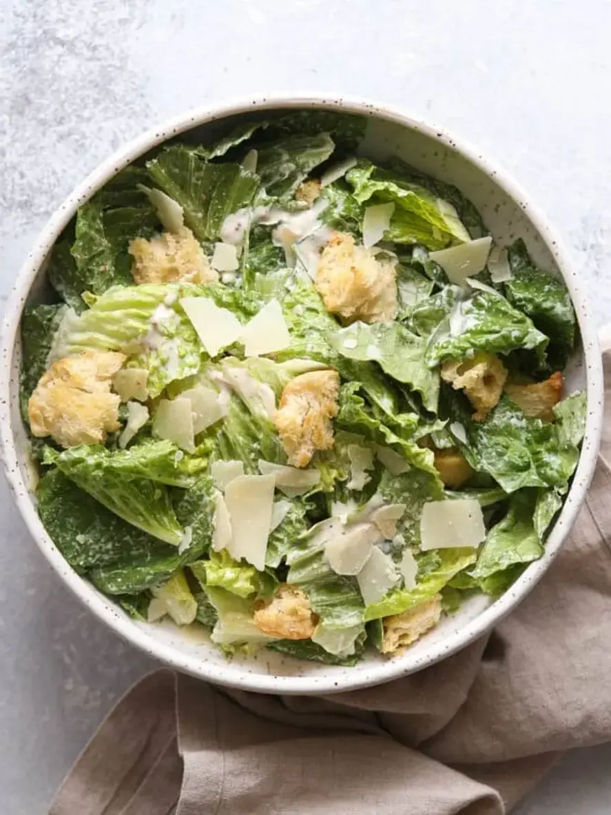 Crispy chicken, crunchy parmesan croutons and a mouthwatering homemade dressing – this chicken caesar salad has it all!