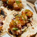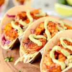 - Line each tortilla with some mango salsa, then the grilled shrimp, then the chipotle crema. Serve hot.