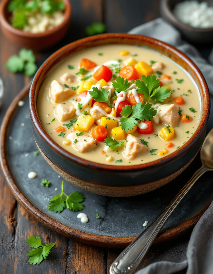 First, serve this Creamy Chicken Soup with Vegetables piping hot in a deep, colorful bowl to highlight its rich texture. For a beautiful finish, top each portion with a sprinkle of fresh chopped parsley and a few homemade croutons. Furthermore, this cozy soup makes a perfect starter for a holiday dinner or a simple, satisfying weeknight meal. Ultimately, you can also present it in a rustic bread bowl for a fun and edible serving vessel that guests absolutely love.