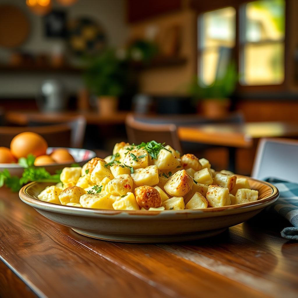 A rich and tangy potato salad that combines the creaminess of deviled eggs with tender potatoes for the ultimate picnic side dish. Perfect for BBQs, potlucks, or family gatherings.