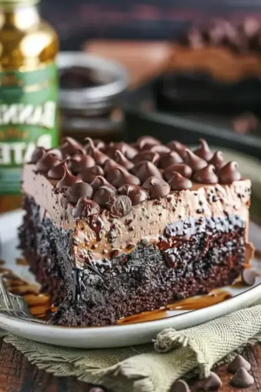Elevate your Baileys Chocolate Poke Cake with creative plating: cut into generous squares and stack on dessert plates, drizzling extra chocolate sauce for a sophisticated look. Garnish with fresh berries or edible flowers to add a pop of color and contrast the rich flavors. This dessert pairs wonderfully with a scoop of vanilla ice cream for a cool complement or a strong coffee to enhance the Baileys notes, making it ideal as a standalone treat or finale to an Irish-American meal.