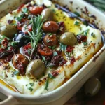 This Baked Feta with Olives & Sun-Dried Tomatoes is a delightful Mediterranean-inspired dish that brings together the creamy, tangy feta with the briny olives and sweet, chewy sun-dried tomatoes for a burst of flavor in every bite. It’s perfect as an easy appetizer or side for gatherings, offering a simple yet elegant way to impress your guests with minimal effort. For a tasty variation, try adding fresh herbs like oregano or basil, and serve it warm with crusty bread to soak up all the delicious juices.