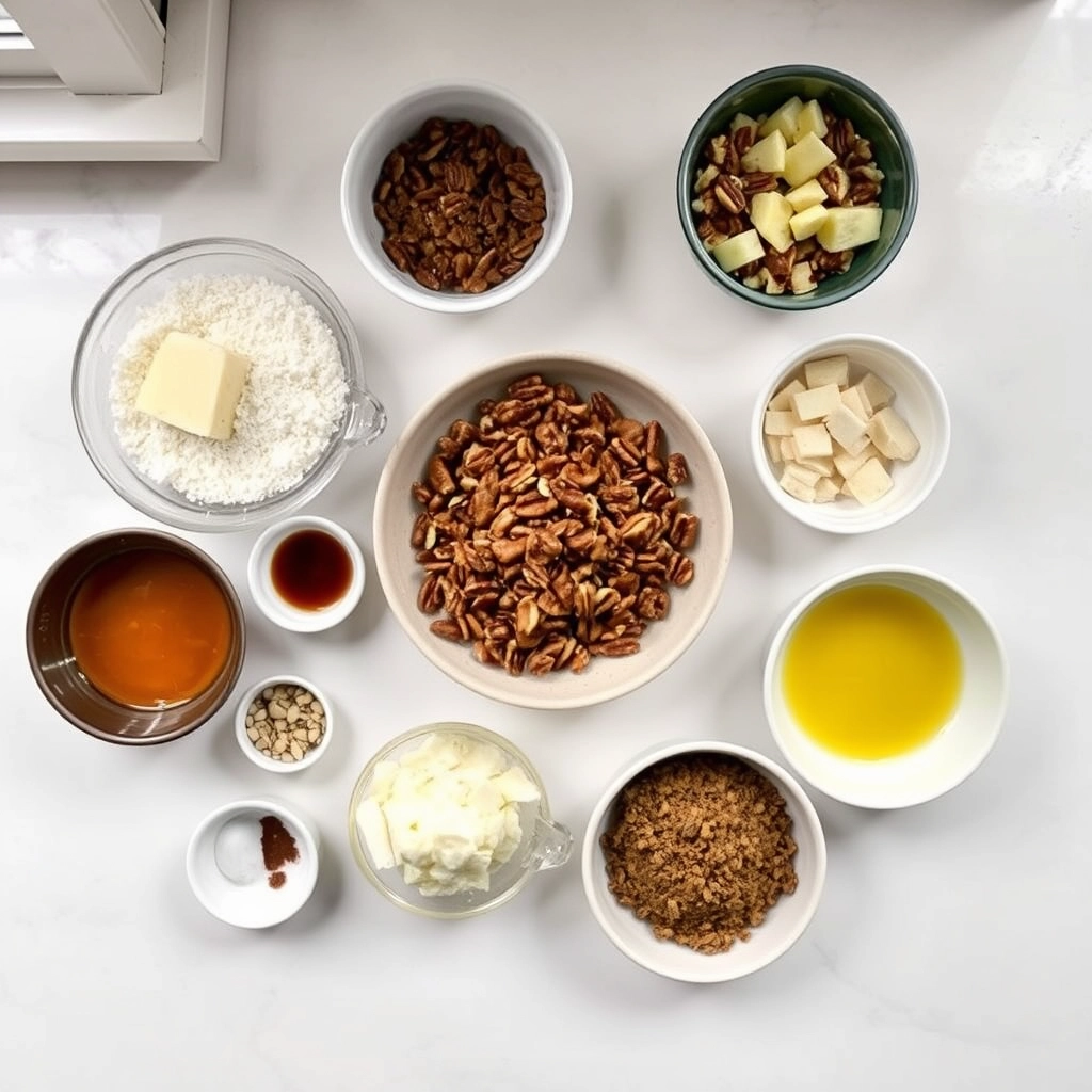 - Mix pecans, granulated sugar, and cinnamon in a small bowl. Sprinkle evenly over batter.
