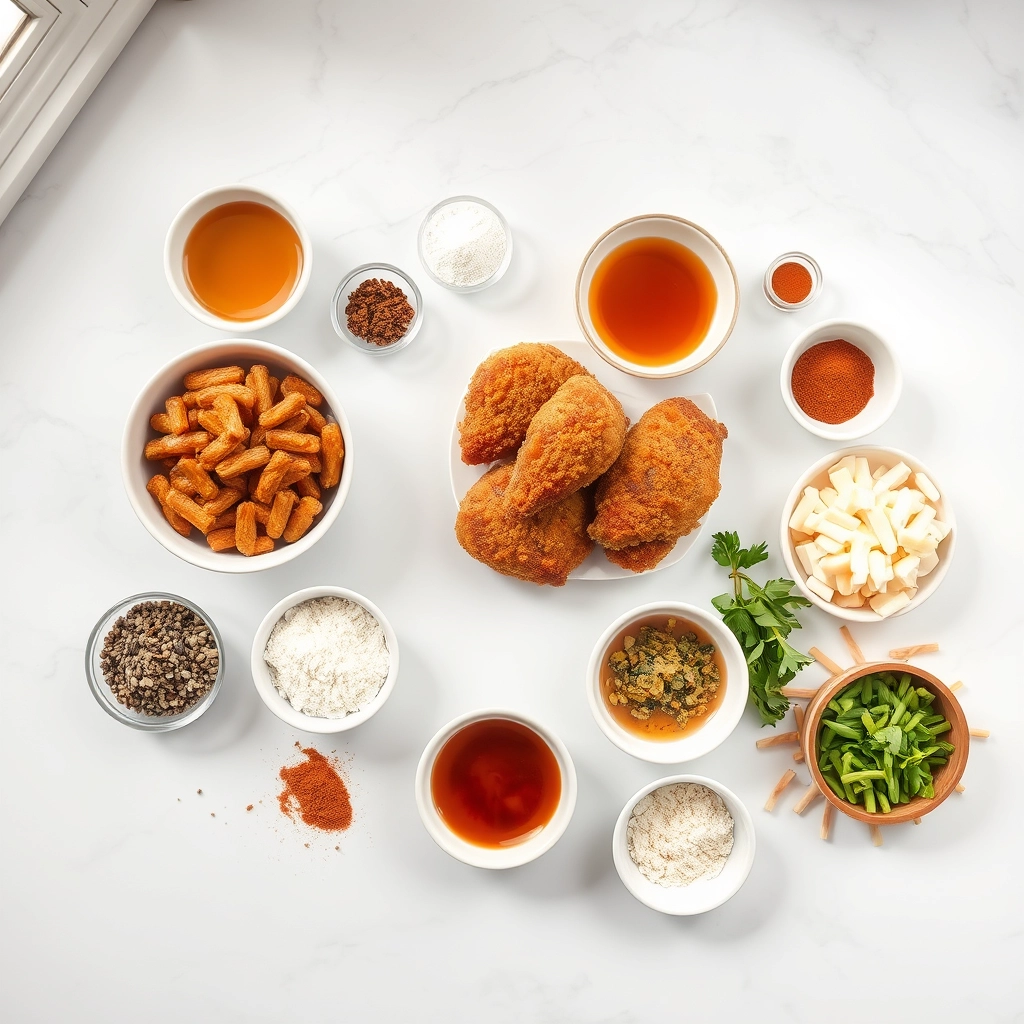 First, preheat your oven to 400°F and grab a large baking sheet. Line it with parchment paper for the easiest cleanup later. Meanwhile, whisk together your dry ingredients in a shallow bowl; this includes flour, panko breadcrumbs, and all your favorite spices. In a second bowl, quickly whisk the eggs until they are perfectly smooth. Pat your chicken breasts completely dry with paper towels, a crucial step for maximum crispiness. Then, generously season each piece with salt and pepper. Now, dip every chicken piece first into the flour mixture, then into the egg, and finally back into the dry ingredients, pressing firmly to ensure a thick, even coating. Arrange the coated chicken on your prepared baking sheet in a single layer, giving each piece plenty of breathing room. Lightly spray the tops with cooking oil; this simple trick helps achieve that gorgeous golden-brown color. Bake for 18-22 minutes, or until the internal temperature reaches 165°F. While the chicken bakes, whisk together the hot honey sauce in a small bowl. Finally, drizzle that irresistible spicy-sweet sauce over the hot, crispy chicken right before serving for the ultimate flavor experience.