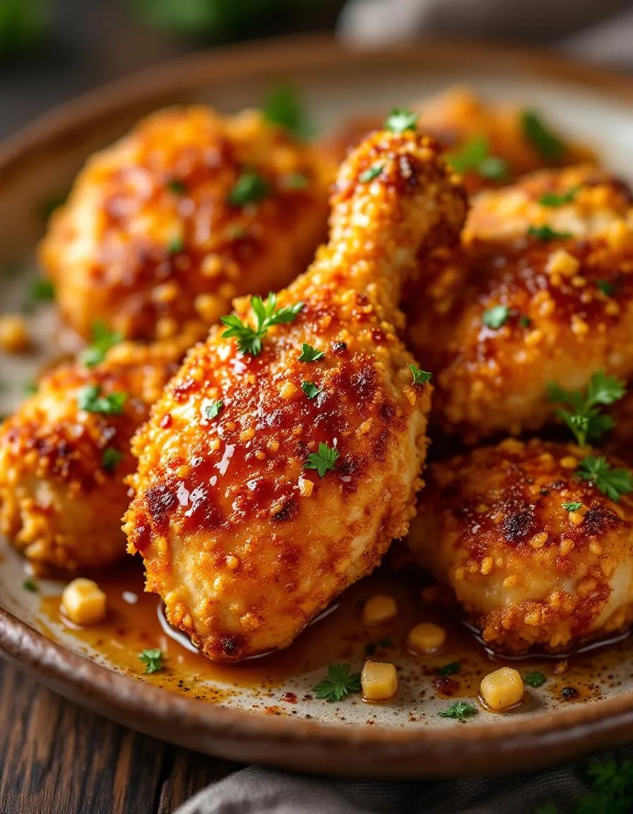 Crispy baked chicken coated in a spicy-sweet hot honey glaze, delivering maximum crunch with minimal oil.