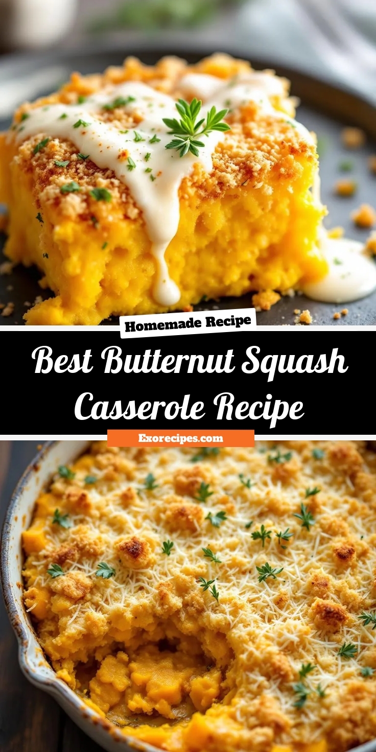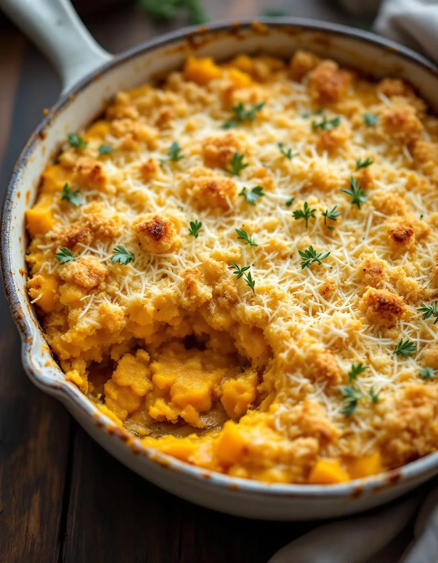 A creamy, savory casserole with roasted butternut squash, herbs, and a crispy topping.