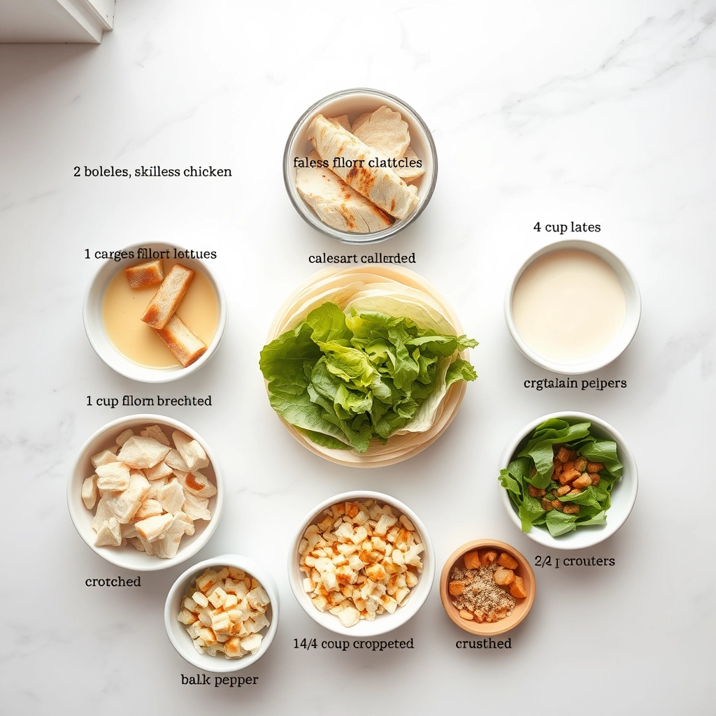 - Layer with love – Spread a generous spoonful of Caesar dressing down the center of each tortilla. Top with a handful of romaine, followed by your sliced chicken, croutons, and a sprinkle of Parmesan. Don’t be shy—pile it high!