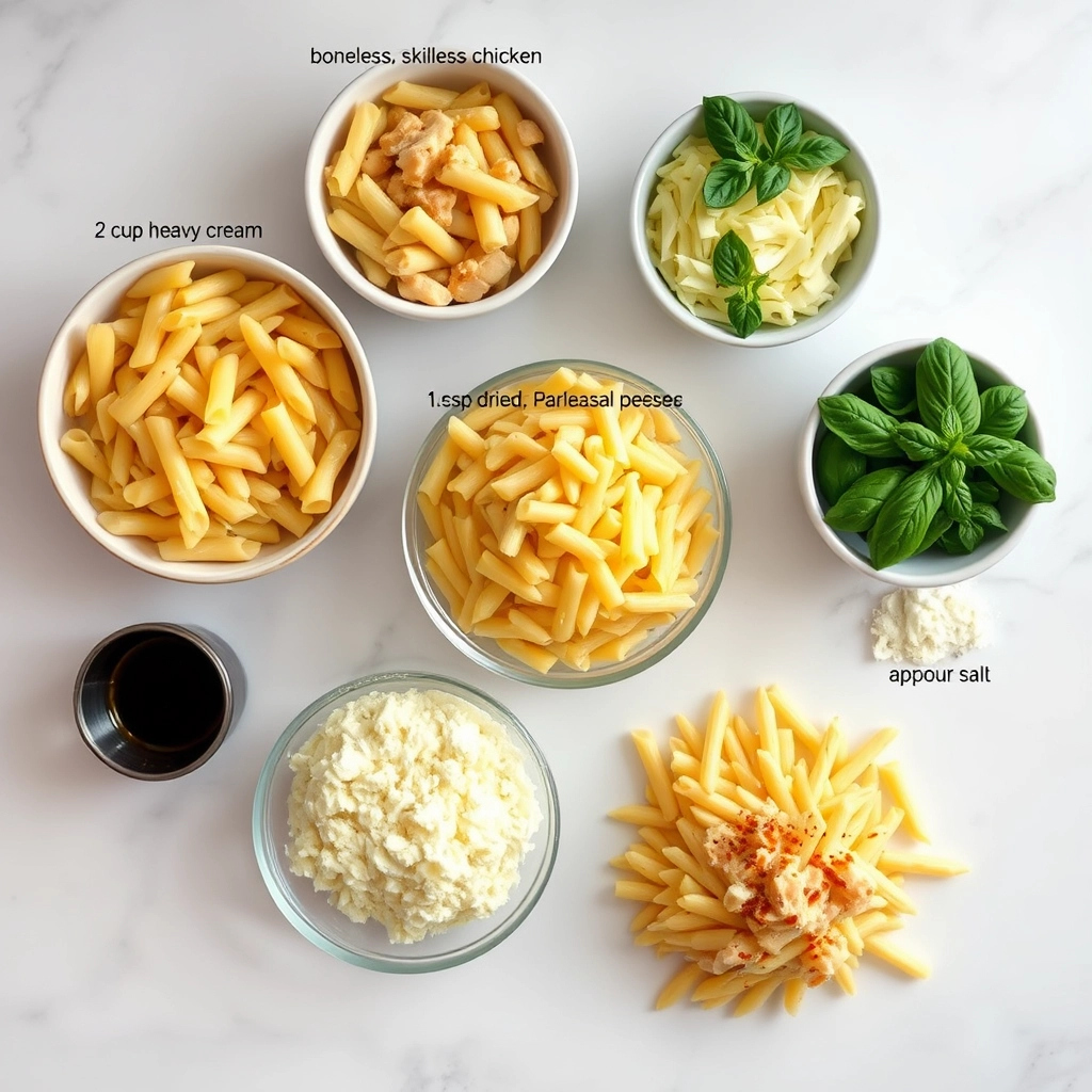 A rich and creamy pasta dish with tender chicken and penne, perfect for a comforting meal.