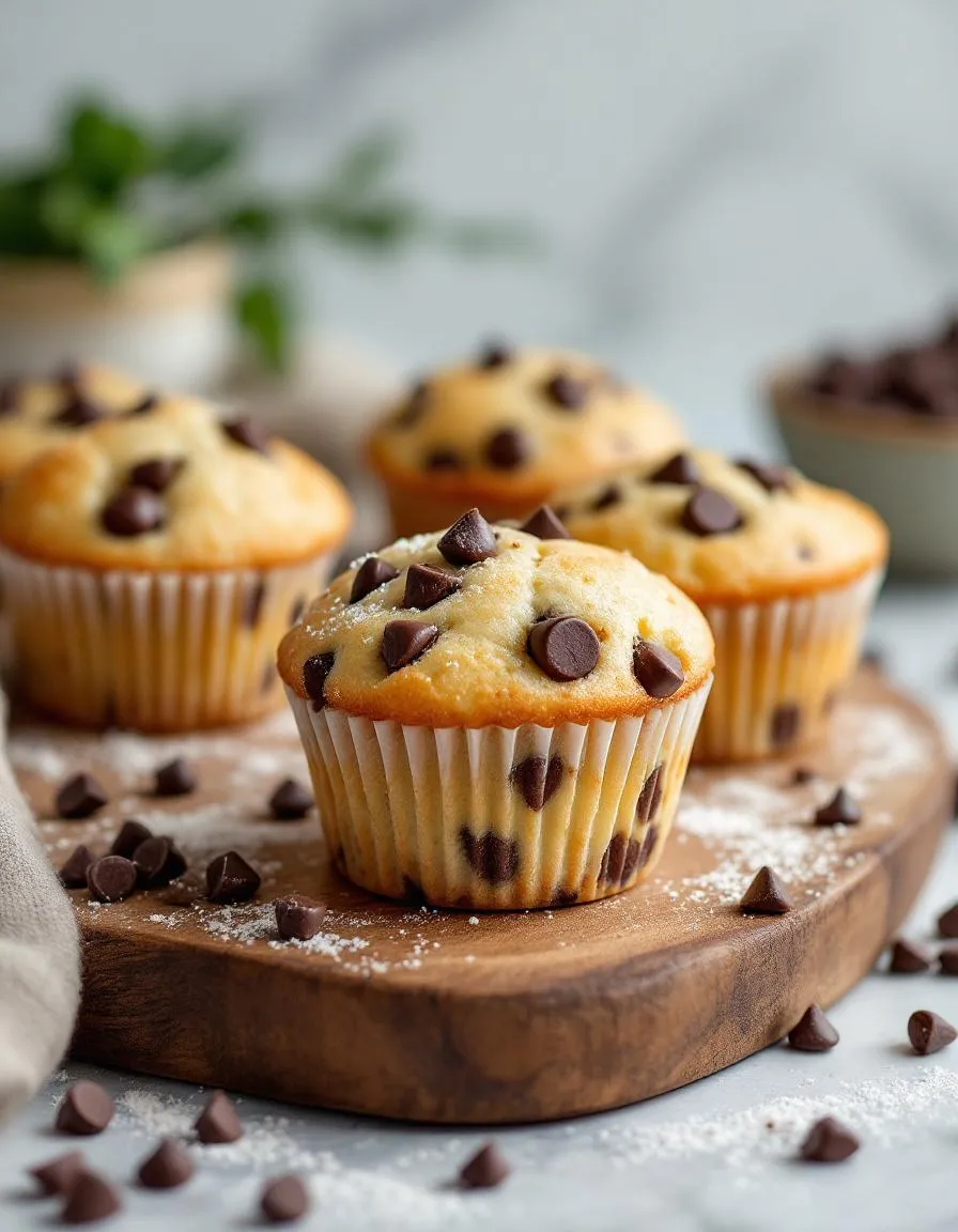 Soft and fluffy muffins loaded with chocolate chips, perfect for breakfast or a snack.