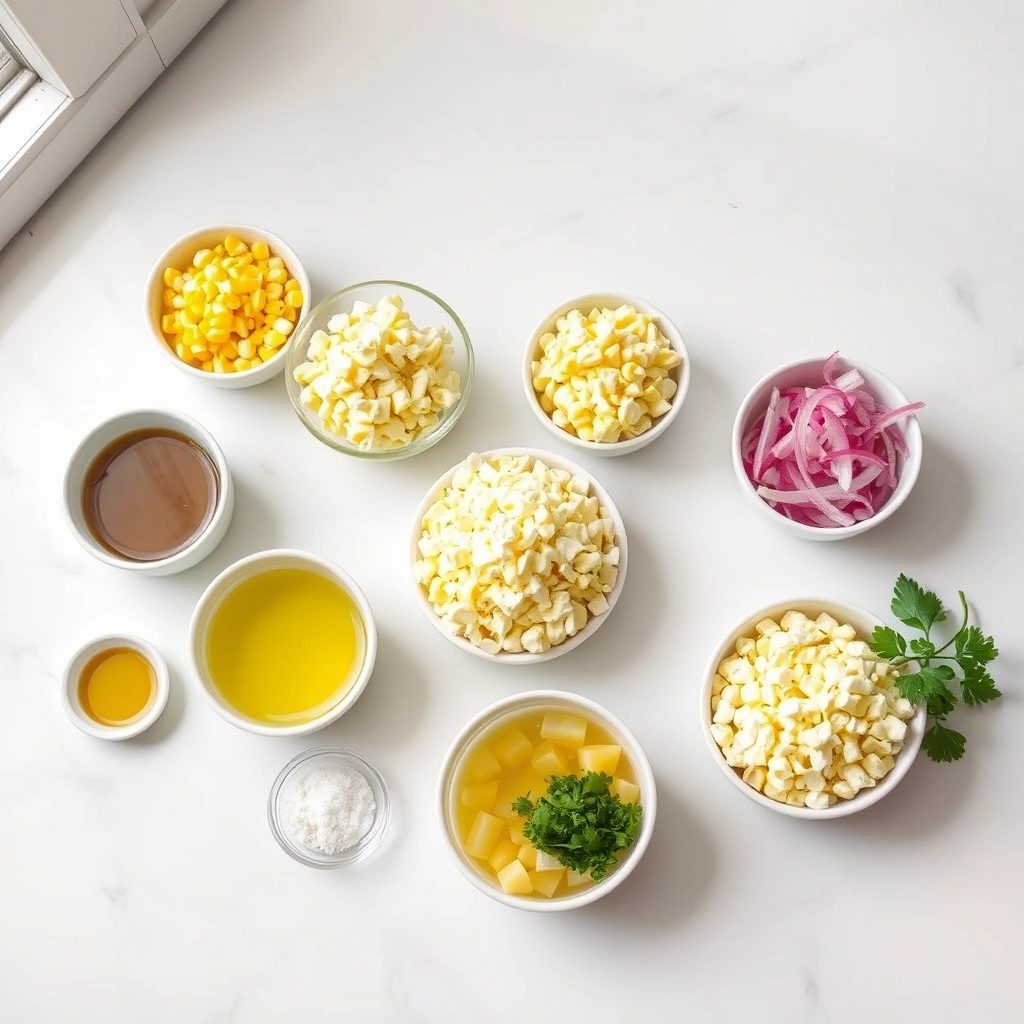 - In a large bowl, combine corn, feta cheese, red onion, and cilantro.