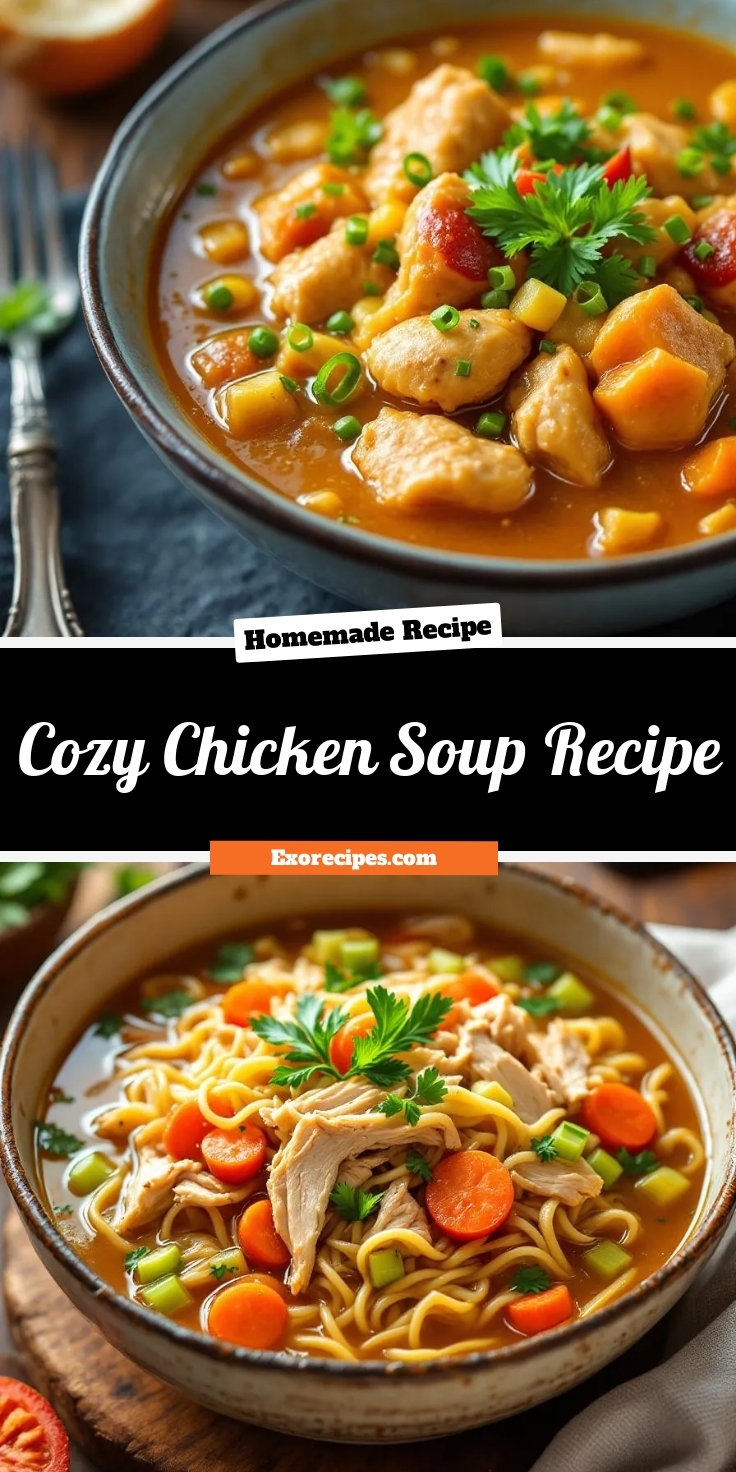 Finally, Cozy Chicken Soup Recipe adapts well to dietary needs. You can easily swap noodles for quinoa or zucchini if you prefer lower-carb options. Whether you need a post-workout recovery meal or a comforting dish on a chilly day, this soup delivers both flavor and nutrition in every spoonful.