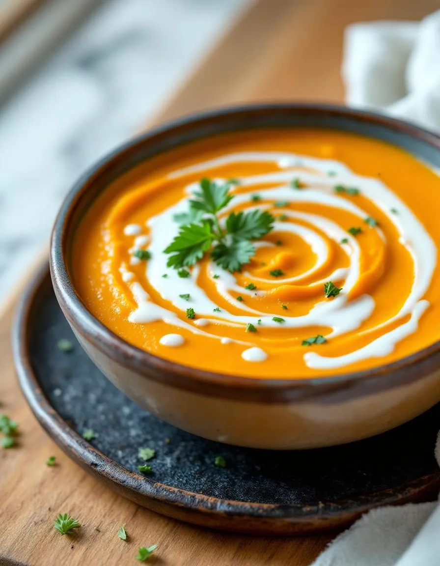 A velvety smooth soup with the natural sweetness of butternut squash and sweet potatoes, perfect for chilly days.