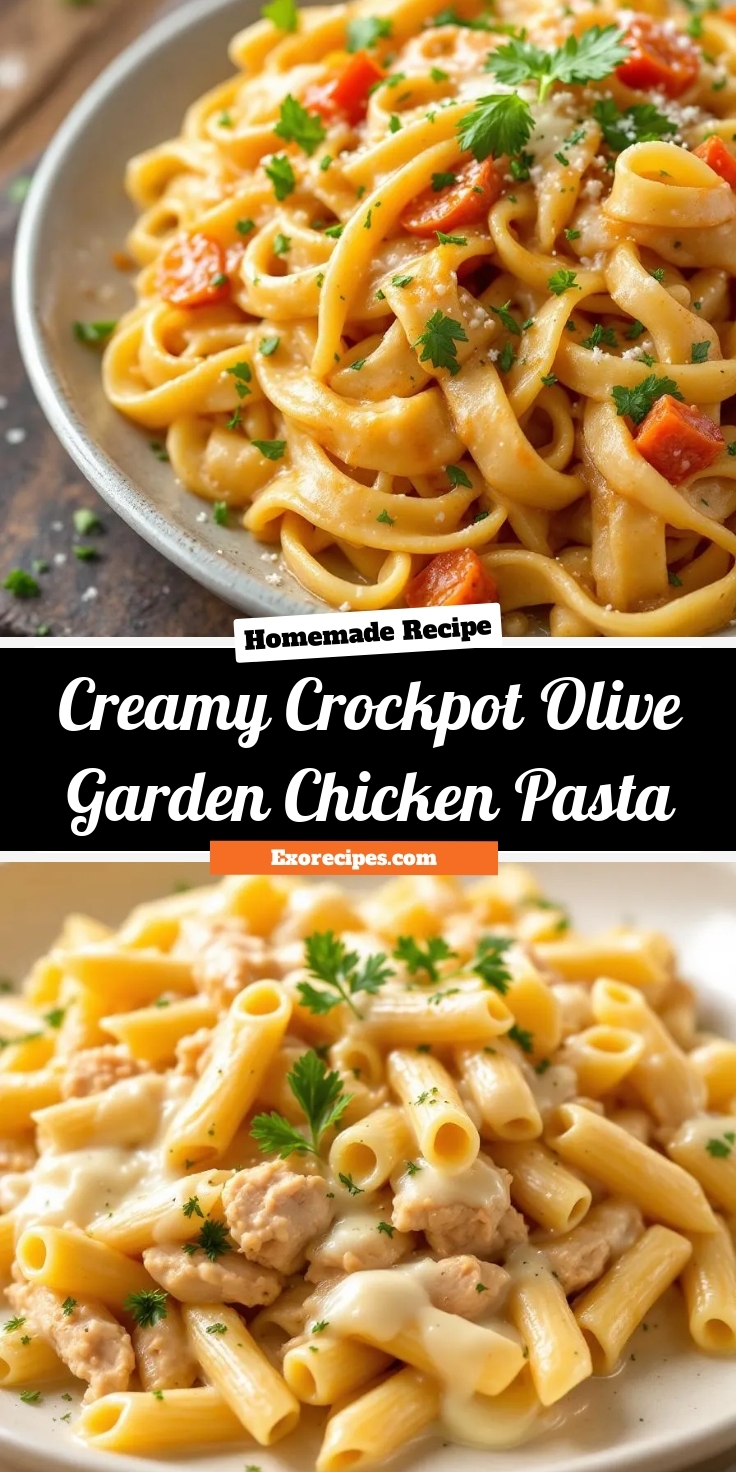 A rich and creamy pasta dish inspired by Olive Garden, made effortlessly in a crockpot with tender chicken and a decadent sauce.