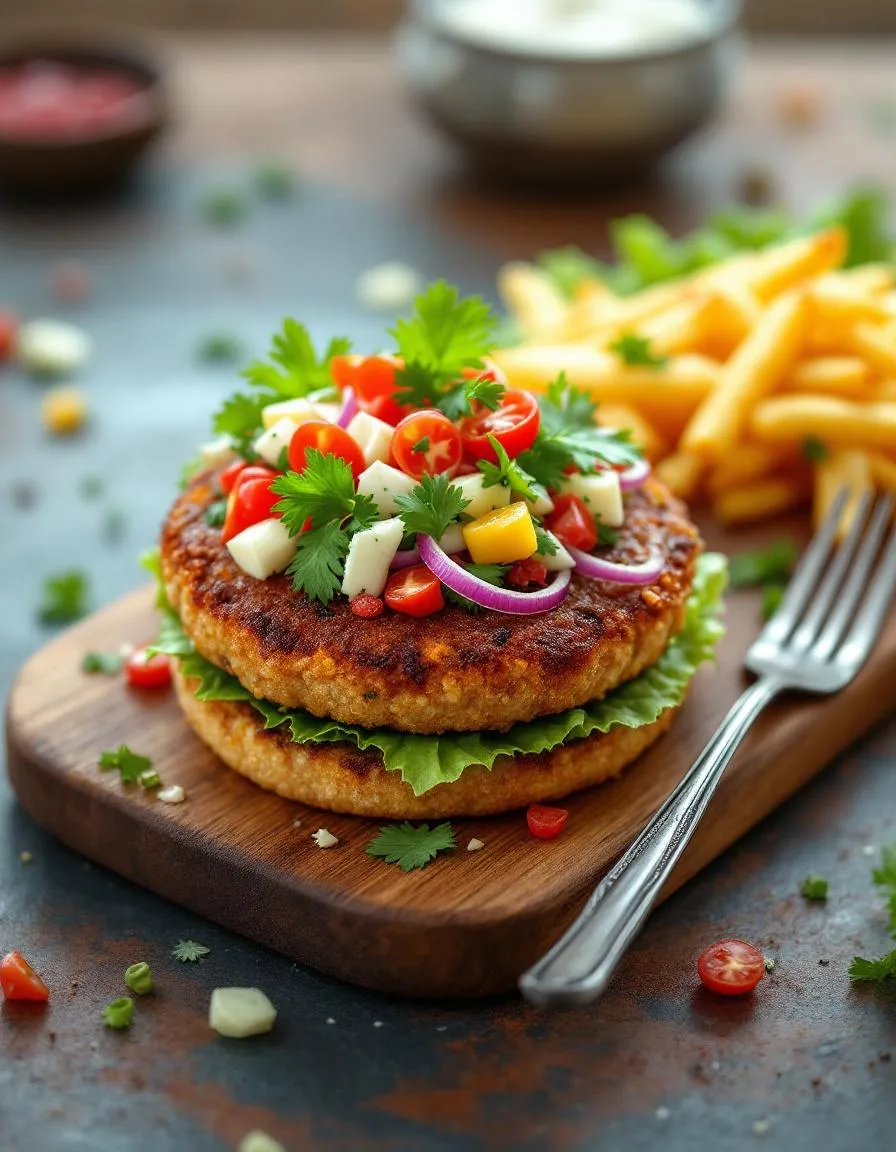 A delicious and healthy quinoa burger packed with flavor and perfect for a nutritious meal.