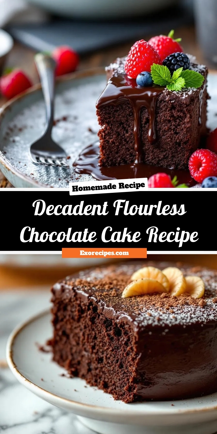 Elevate your Decadent Flourless Chocolate Cake Recipe by serving it slightly warmed for a gooey, melt-in-your-mouth texture. For a stunning presentation, dust the top with cocoa powder or powdered sugar right before serving. Alternatively, arrange fresh raspberries or mint leaves around each slice for a pop of color. This cake shines at dinner parties, but it also makes a luxurious treat for cozy nights in. If you want to impress guests, pair individual slices with edible gold leaf for a touch of elegance.