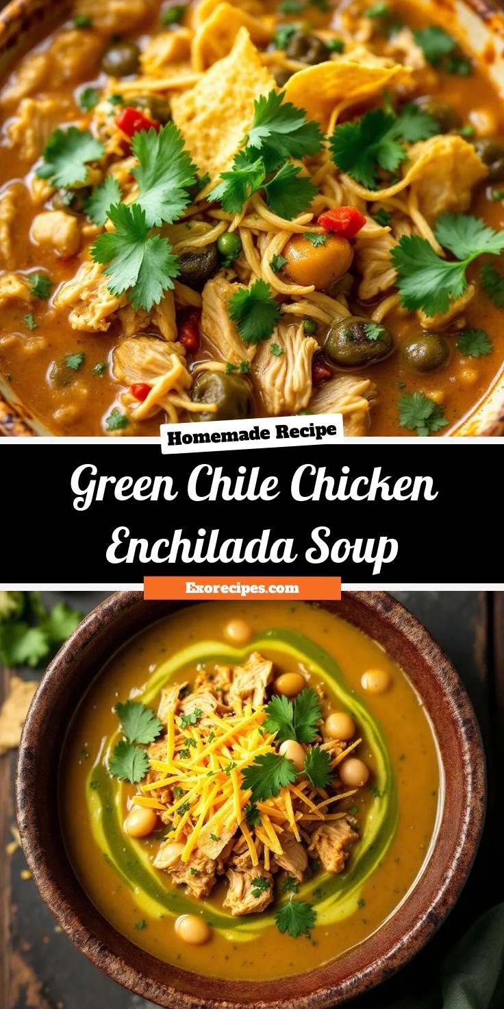 A creamy and flavorful soup inspired by green chile chicken enchiladas, perfect for a comforting meal.