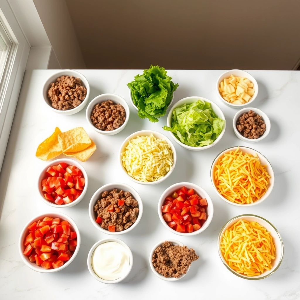 - Toppings of choice – Think shredded lettuce, diced tomatoes, avocado, sour cream, and a reckless amount of shredded cheddar.