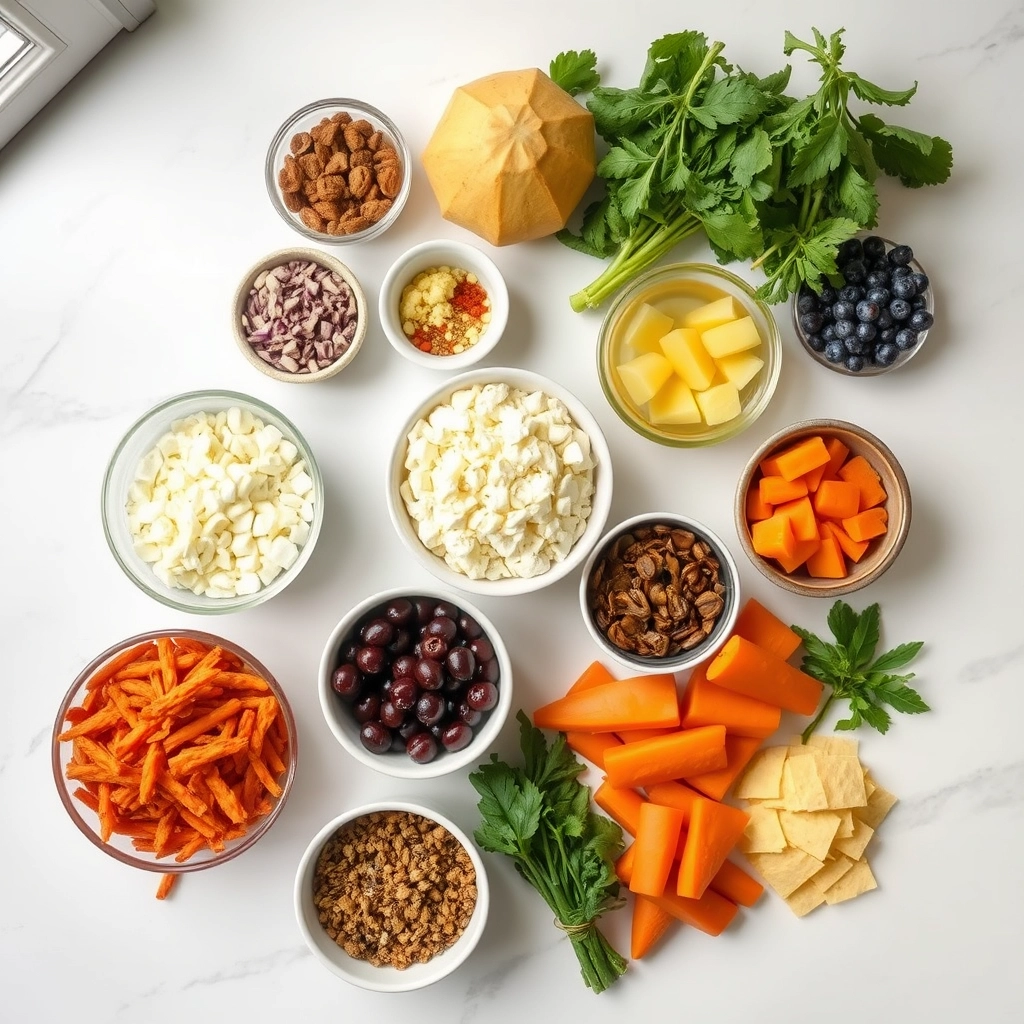 - For dressing: 2 tbsp olive oil, 1 tbsp maple syrup, 1 tbsp Dijon mustard, 1 tbsp apple cider vinegar