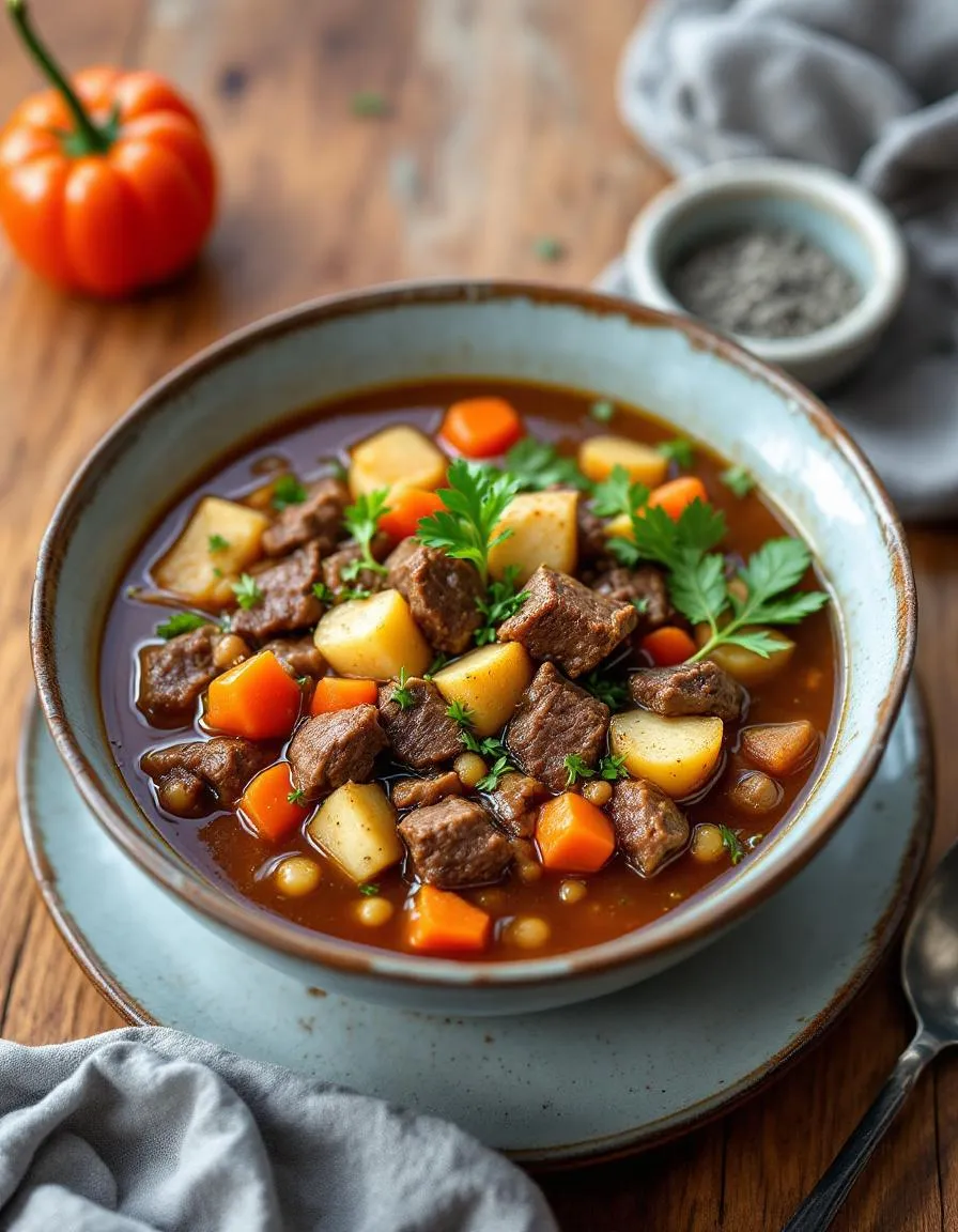 A comforting and nutritious soup packed with tender beef, fresh vegetables, and rich flavors.