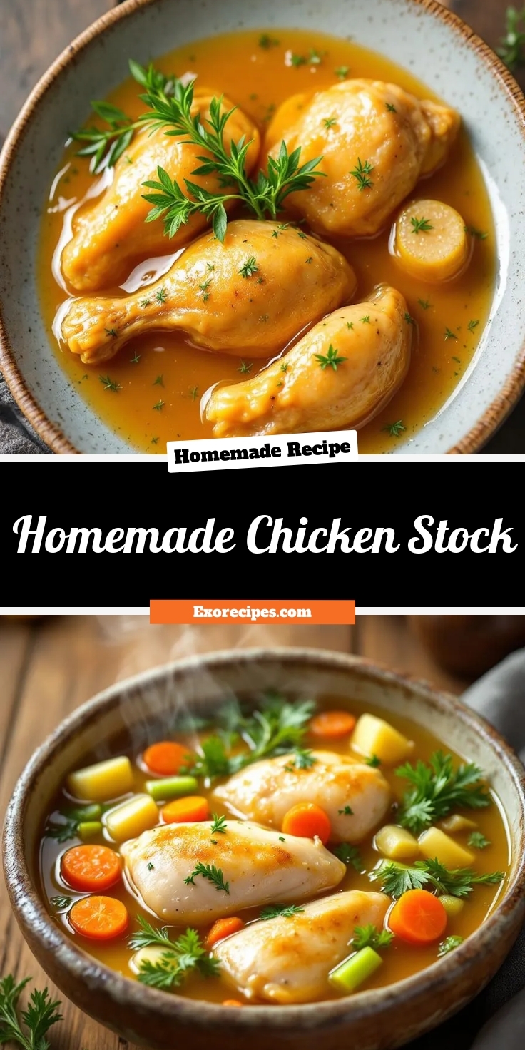 A rich and flavorful homemade chicken stock perfect for soups, stews, and sauces.