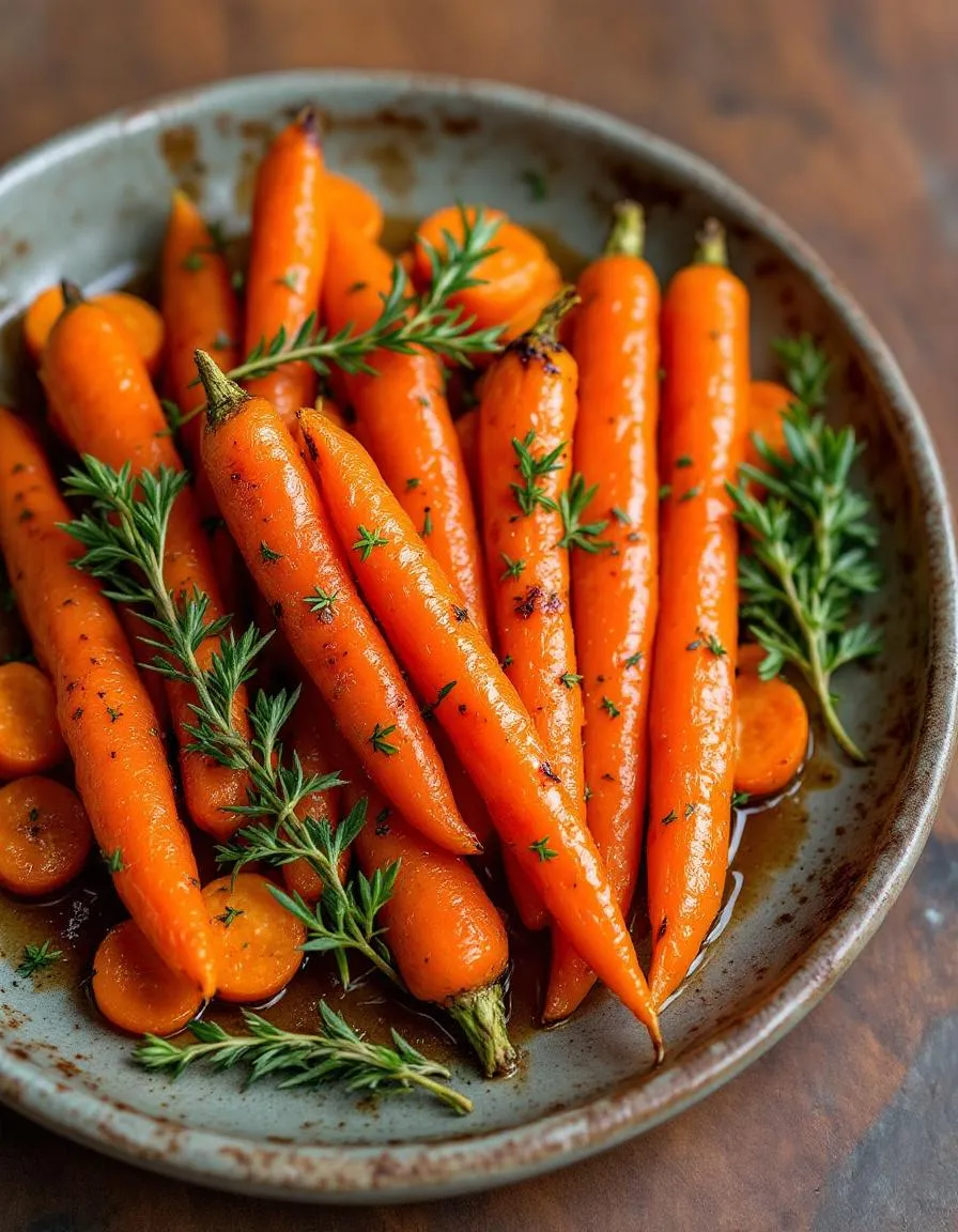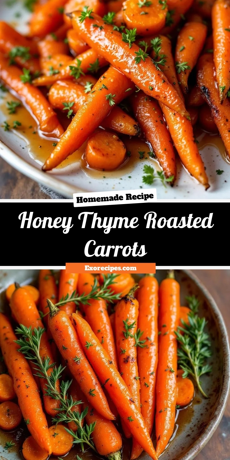 Sweet and savory roasted carrots with a honey thyme glaze, perfect as a side dish.