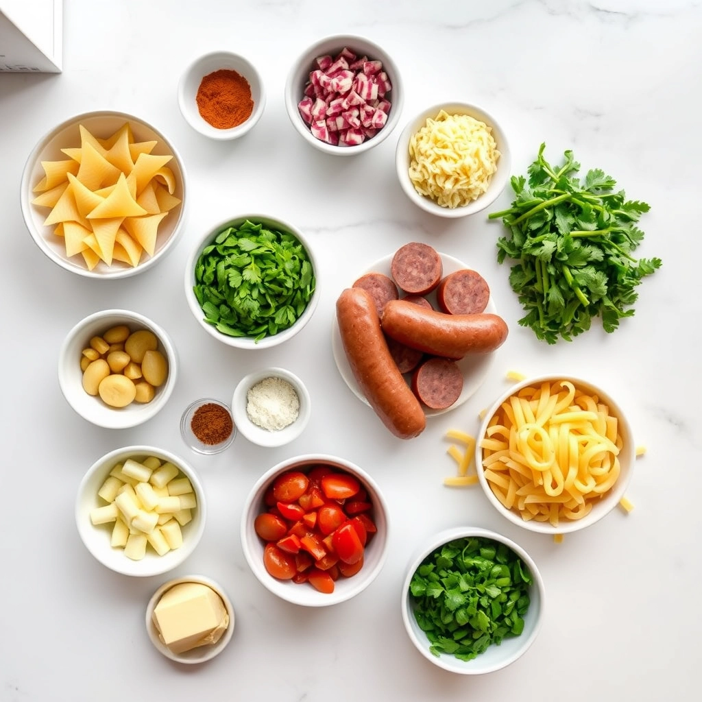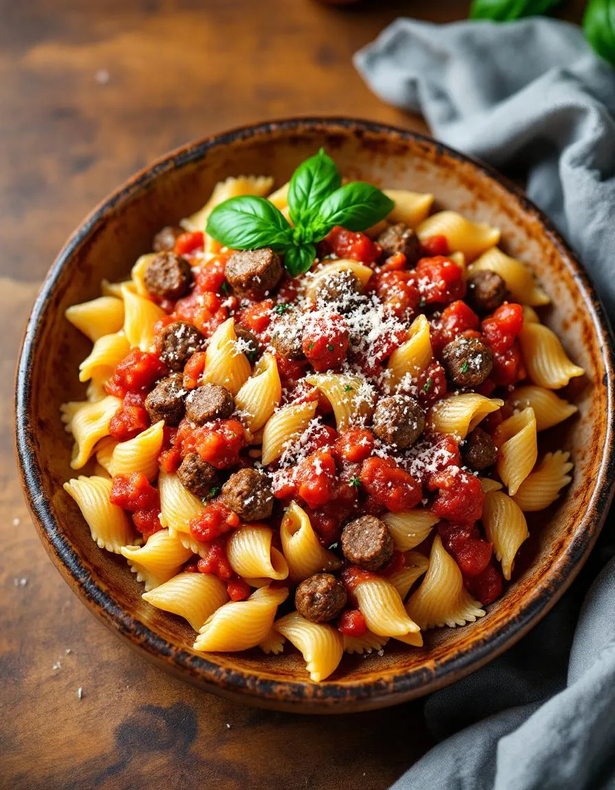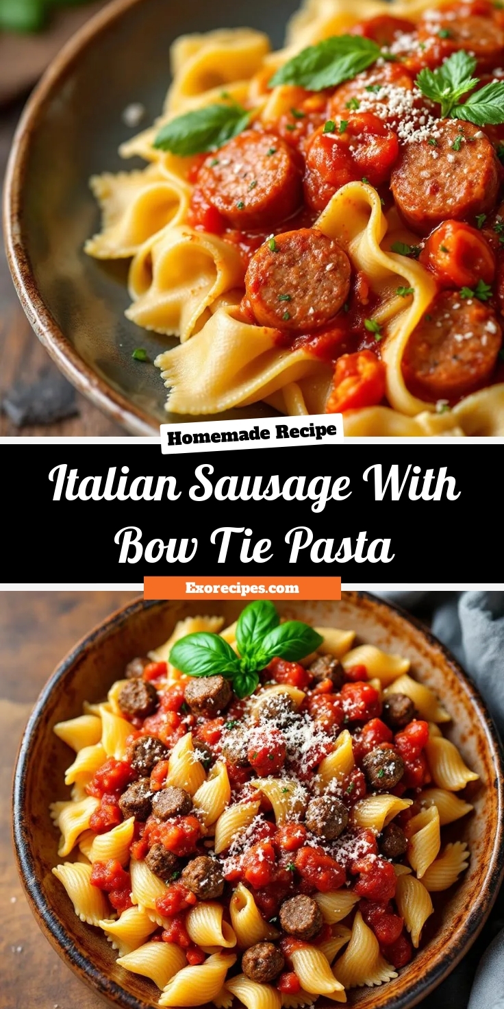 A hearty and flavorful dish combining Italian sausage with bow tie pasta in a rich tomato sauce.