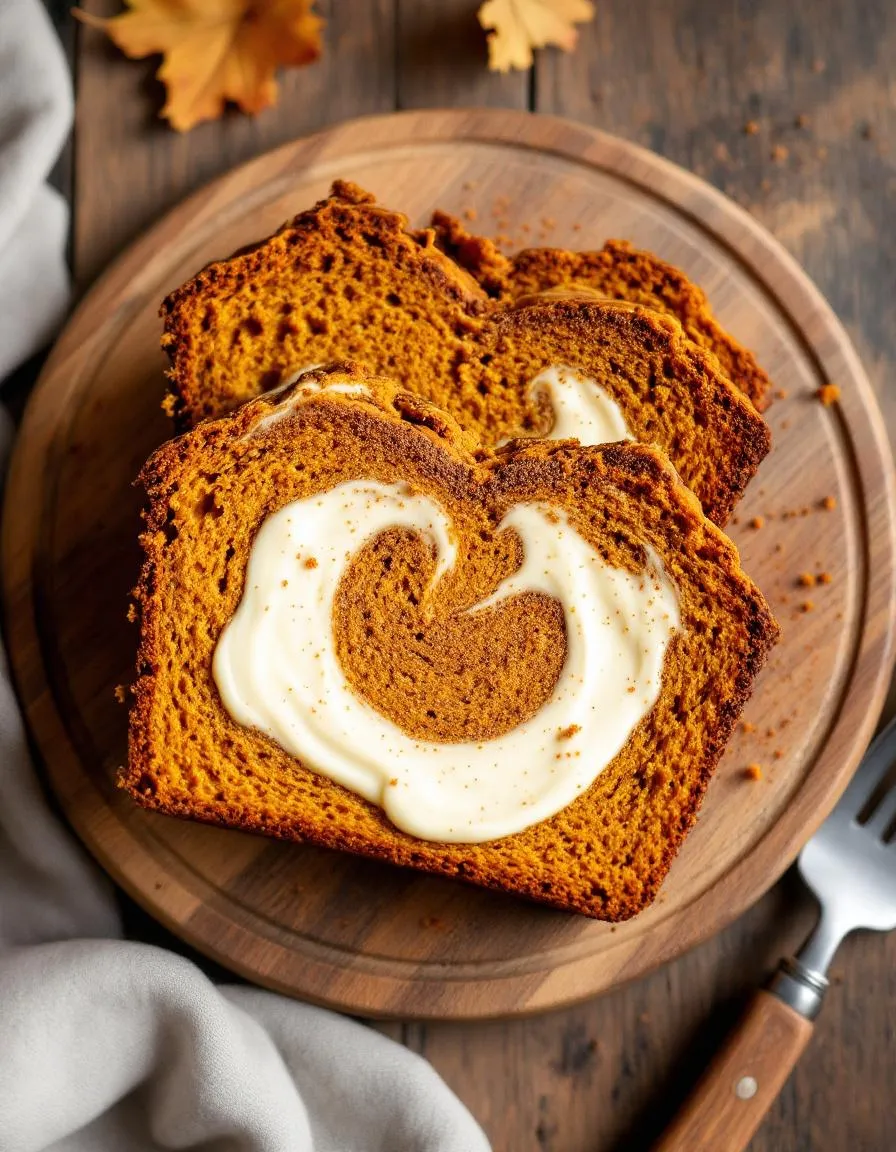 A moist and flavorful keto-friendly pumpkin bread with a rich cream cheese swirl, perfect for fall.