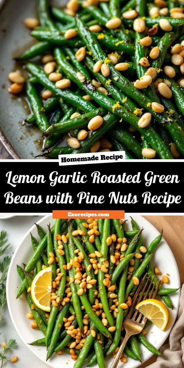 A simple yet flavorful side dish featuring roasted green beans tossed with garlic, lemon, and toasted pine nuts.