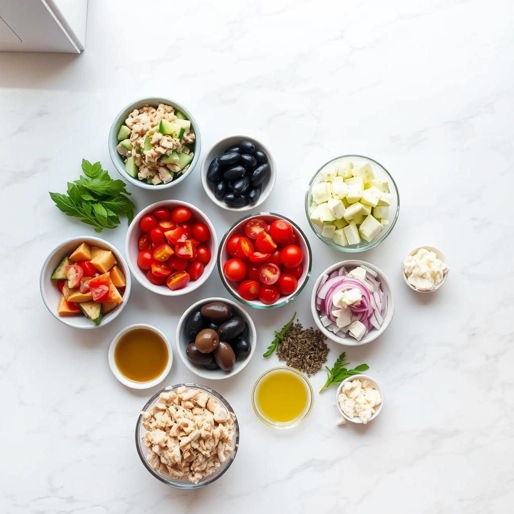 A fresh and flavorful tuna salad with Mediterranean-inspired ingredients.