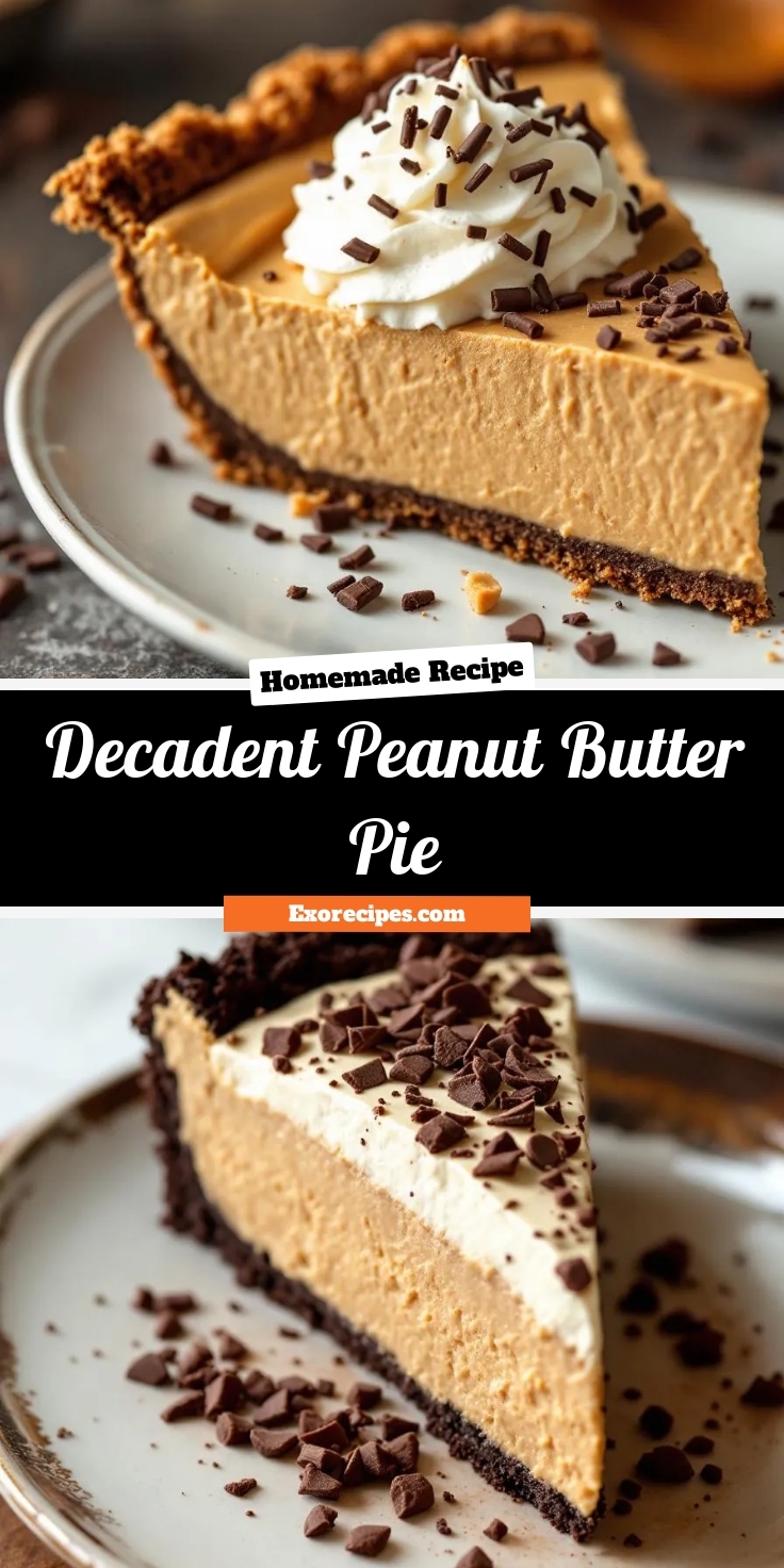 A rich and creamy peanut butter pie with a chocolate cookie crust, perfect for any occasion.