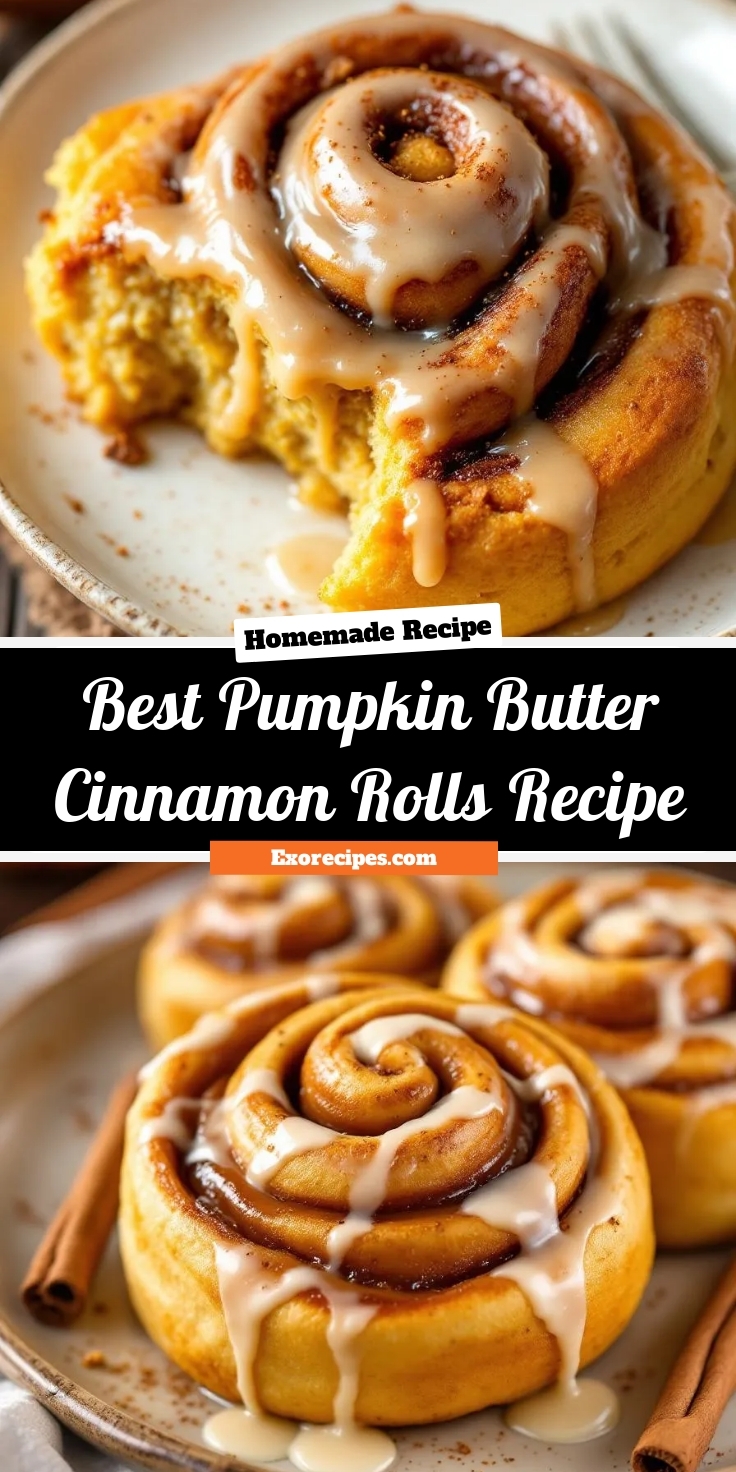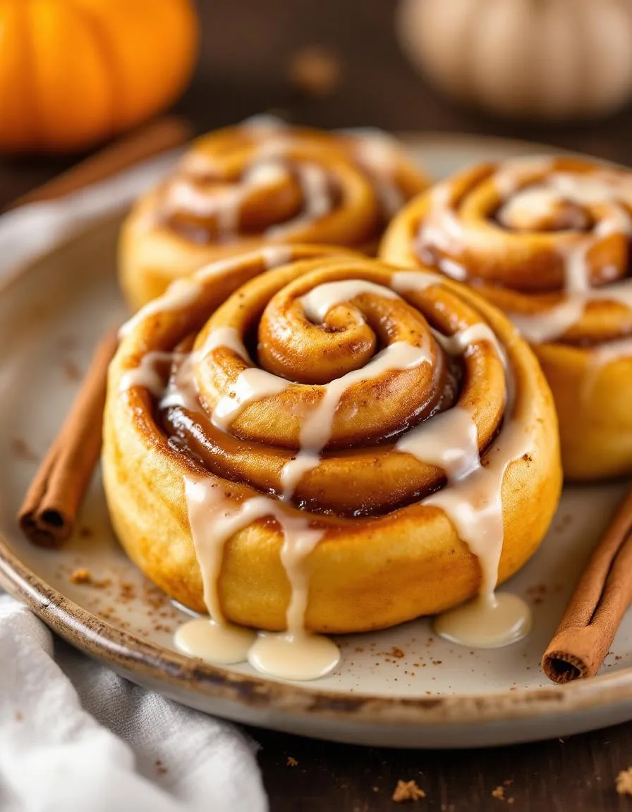 Soft, fluffy cinnamon rolls swirled with sweet pumpkin butter and topped with a creamy glaze.