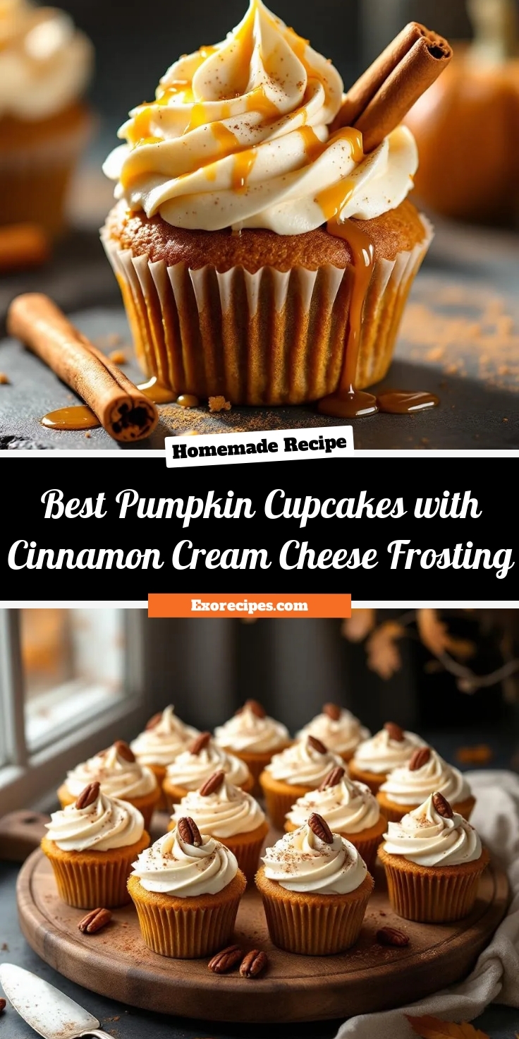Moist and spiced pumpkin cupcakes topped with a creamy cinnamon cream cheese frosting, perfect for autumn gatherings.