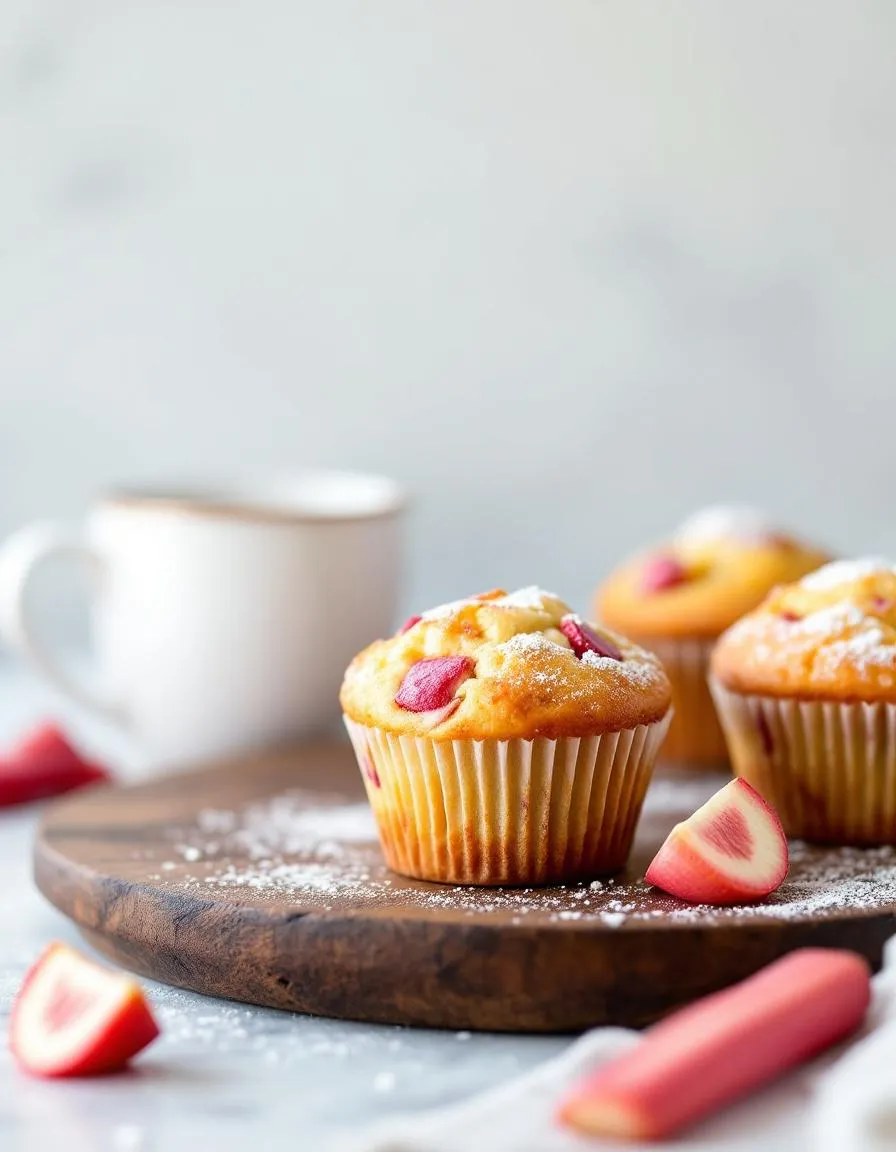 Start by preheating your oven to 375°F and lining a muffin tin with paper liners. While the oven heats, whisk together the dry ingredients—flour, baking powder, and a pinch of salt—in a large bowl. In another bowl, mix the wet ingredients: Greek yogurt, melted butter, eggs, and vanilla extract until smooth. Fold the wet mixture into the dry ingredients gently, avoiding overmixing. Then, stir in the diced rhubarb for a tangy twist. Spoon the batter evenly into the muffin cups, filling each about two-thirds full. Bake for 18-20 minutes until golden and a toothpick comes out clean. For extra flavor, drizzle honey over the warm muffins or sprinkle with coarse sugar before serving. To save time, prep the dry and wet ingredients the night before and combine them just before baking. If you’re short on fresh rhubarb, frozen works too—just thaw and pat it dry first.