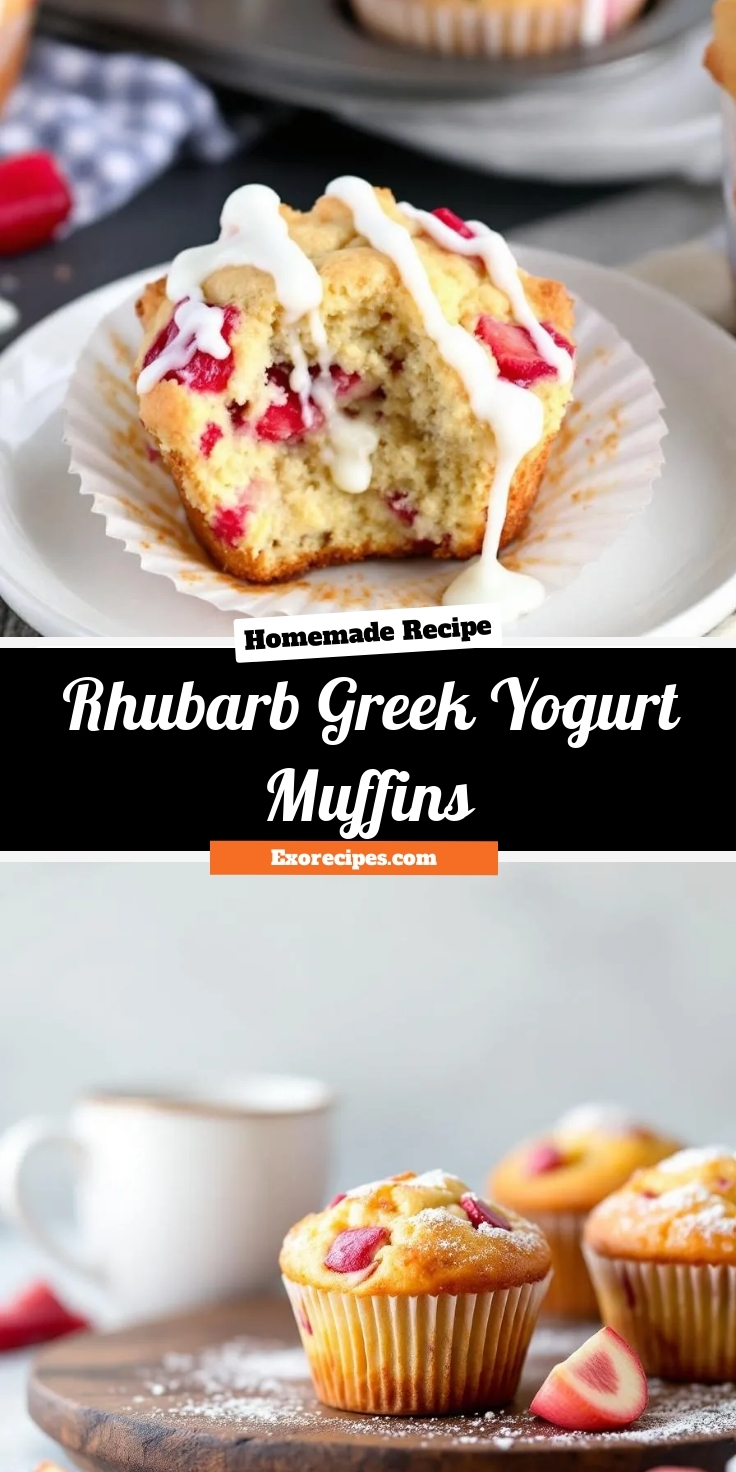Moist and tangy muffins with fresh rhubarb and Greek yogurt for a delightful breakfast or snack.