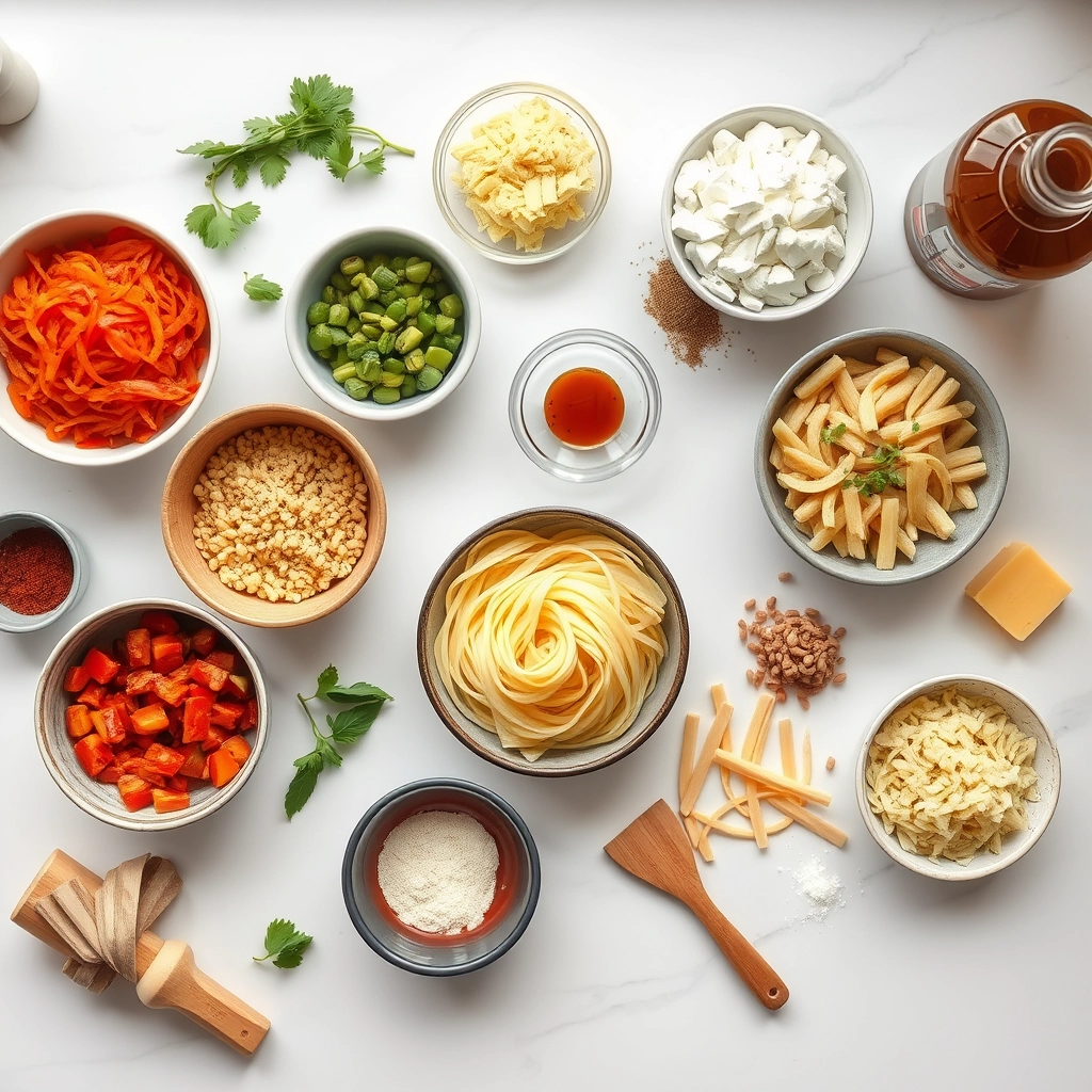 Start by peeling and slicing your potatoes into thin, even strips for the Spicy Potato Noodles. Meanwhile, bring a large pot of salted water to a boil. Toss the potato strips into the boiling water and cook them for about 3 minutes until they soften slightly but still hold their shape. Drain them well and set aside. Heat a generous drizzle of oil in a large skillet over medium-high heat. Add minced garlic and ginger, stirring until fragrant, then toss in the parboiled potato strips. Stir-fry them for 5 minutes until they develop a light crispness. Next, whisk together soy sauce, chili paste, and a pinch of sugar in a small bowl. Pour this sauce over the potatoes, tossing everything to coat evenly. For extra flavor, fold in chopped scallions and sesame seeds just before serving. If you’re short on time, use pre-cut potato strips or a mandoline slicer to speed up prep. Keep the heat high to ensure the potatoes crisp up quickly without becoming mushy.