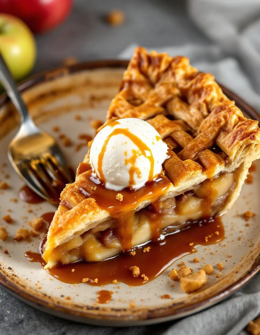 apple filling into your waiting crust and dot the top with small pieces of butter. Then, drizzle a generous amount of toffee sauce over the apples for that signature caramelized sweetness. Carefully place the top crust over the filling, crimp the edges to seal, and cut a few slits in the center for steam to escape. For an extra glossy finish, brush the top with an egg wash. Finally, bake your Toffee Apple Pie for about 50 minutes until the crust is a beautiful golden brown and the filling is bubbly. Let the pie cool on a wire rack for at least two hours before slicing; this patience allows the juices to thicken properly.Mistakes I’ve made and learned from