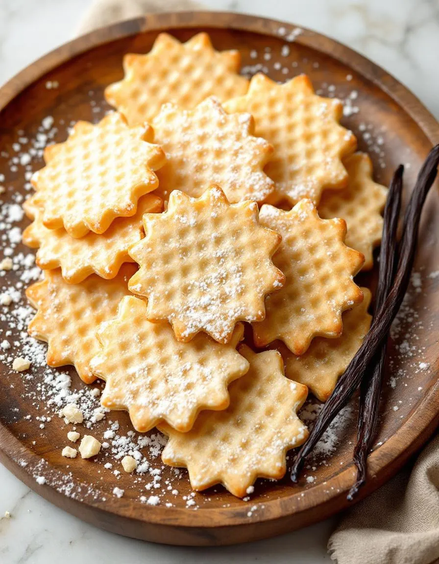 Crisp and buttery vanilla wafers perfect for snacking or using in desserts.