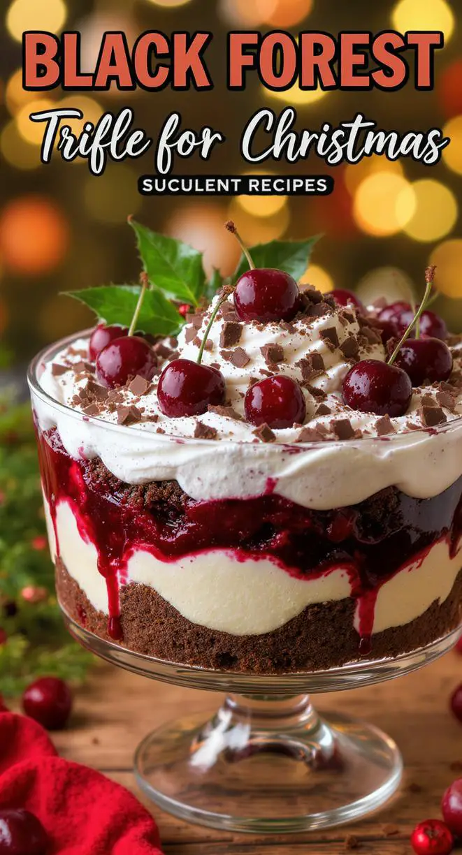 This isn’t just another trifle; it’s a festive Black Forest dessert that reimagines the traditional German-inspired treat with layers of moist chocolate cake, juicy cherries, and airy whipped cream.