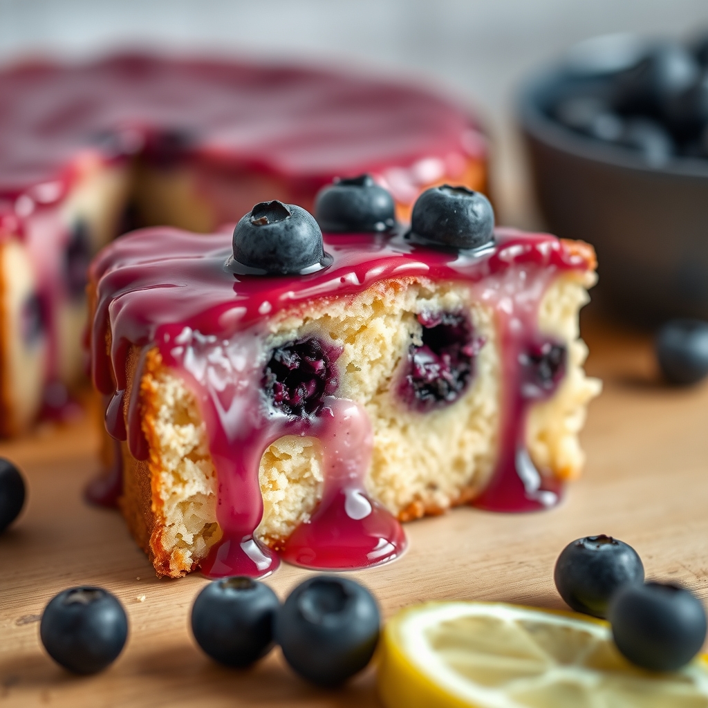 For an extra-moist cake, don’t overmix the batter—just stir until the ingredients are incorporated. To prevent the blueberries from sinking, toss them in a bit of almond flour before folding them in. If you prefer a more intense lemon flavor, add an extra teaspoon of zest or a splash of lemon extract. For a golden, slightly crisp top, brush the baked cake with a little melted butter as soon as it comes out of the oven. And if you’re using frozen blueberries, keep them frozen until the last moment to avoid excess moisture.
